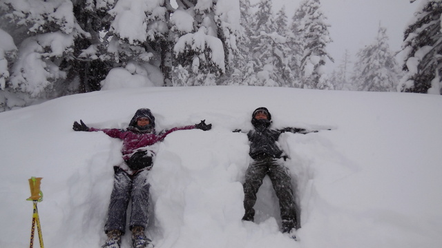 お父さんが雪の中に落とすとすっぽりと胸まで来るほどの軽いパウダースノー。